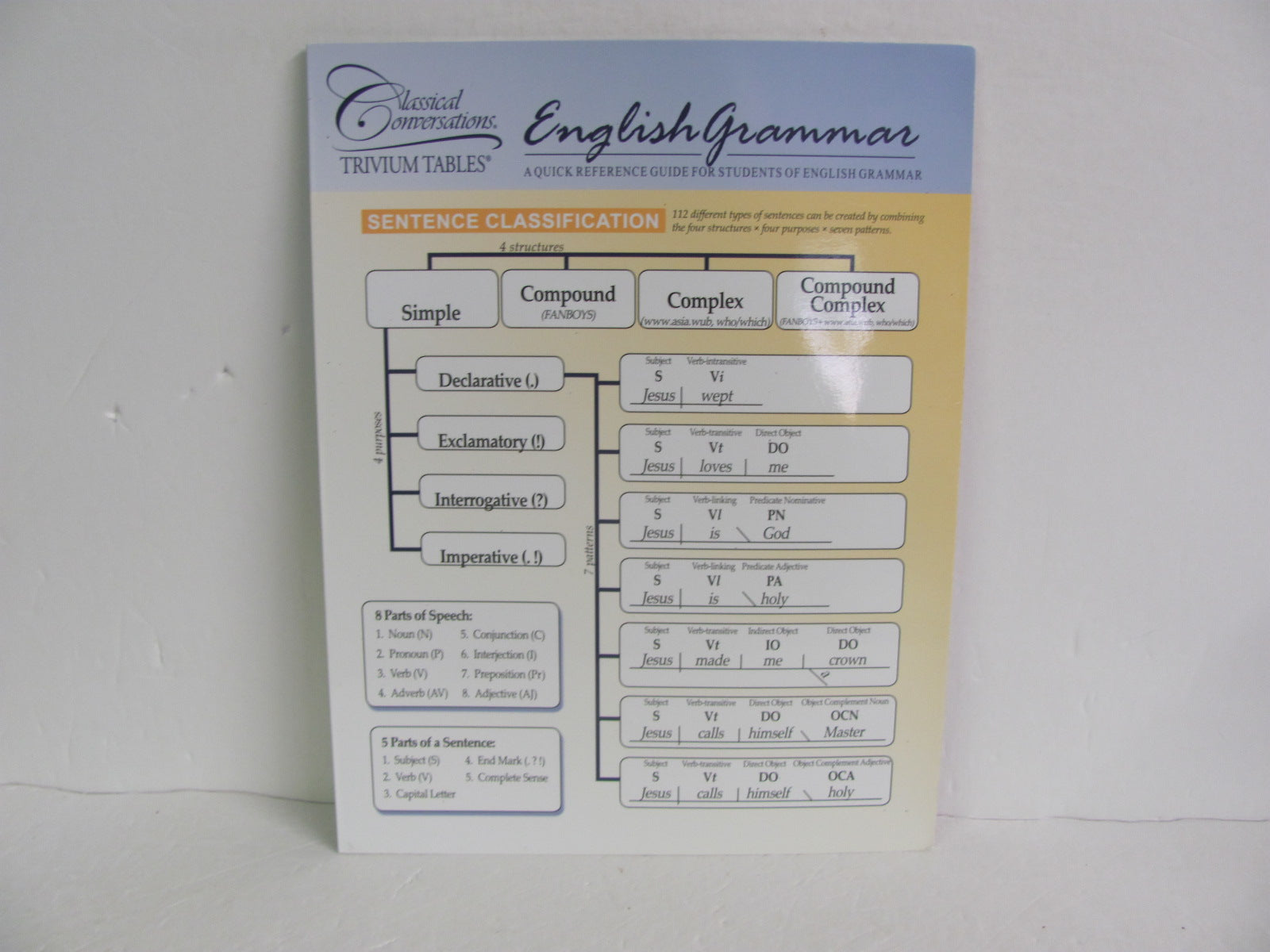 English Grammar Trivium Tables Pamplet Pre-Owned Classical Conversations